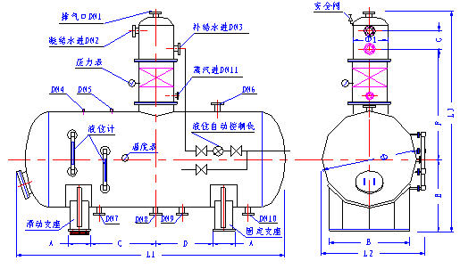 (五)、除氧器工藝系統(tǒng)參考圖 (六)、使用說明 1、高位布置除氧器 (1)首先將壓力表、溫度表、安全閥(起跳壓力0.06Mpa)及其它控制儀表進(jìn)行校驗(yàn),合格為止。 (2)啟動(dòng)軟水泵,由軟水旁路閥進(jìn)水,待除氧器水箱液位正常后停泵,開啟二次蒸汽使水箱水溫達(dá)100℃。 (3)開啟除氧器頭頂部排氣閥(四分之一到二分之一開度),分別將軟水和蒸汽旁通手動(dòng)閥門開啟,當(dāng)溢流水封溢水且水溫達(dá)104℃時(shí),開啟出水閥,同時(shí)啟動(dòng)鍋爐給水泵。(如鍋爐尚未運(yùn)行,則給水可全部回流除氧水箱,循環(huán)試驗(yàn)) (4)以上手動(dòng)操作經(jīng)檢查一切正常之后,可轉(zhuǎn)換到自動(dòng)操作。 (5)設(shè)備停用時(shí)應(yīng)放盡存水、檢查內(nèi)部、定期清洗和內(nèi)部刷汽包漆。 2、低位布置除氧器 (1)本設(shè)備必須配用機(jī)械委上海工業(yè)鍋爐研究所研制的CYG型鍋爐給水泵(低位除氧專用)。注意:該泵的安裝、調(diào)試、使用、維修必須嚴(yán)格按照蕪湖工業(yè)泵廠的圖紙和安裝使用說明書進(jìn)行。 (2)首先將壓力表、溫度表、安全閥(起跳壓力0.06Mpa)及其它控制儀表校驗(yàn)合格。 (3)啟動(dòng)軟水泵,由手動(dòng)旁路閥進(jìn)軟水,待除氧水箱液位正常后停泵,開啟二次蒸汽閥使水箱水溫為95℃。 (4)開啟除氧頭頂部排氣閥(二分之一開度),分別將手動(dòng)旁路閥打開進(jìn)蒸汽,同時(shí)開啟軟水泵,當(dāng)溢流水封溢水且水溫達(dá)104℃時(shí),開啟出水閥,同時(shí)啟動(dòng)鍋爐給水泵。(如鍋爐尚未運(yùn)行,則給水可全部回流除氧水箱,循環(huán)試驗(yàn)) (5)以上手動(dòng)操作經(jīng)檢查一切正常之后,可將軟水和蒸汽的自動(dòng)調(diào)節(jié)閥投入使用。 (6)當(dāng)自動(dòng)調(diào)節(jié)閥運(yùn)轉(zhuǎn)正常后,即可使鍋爐給水投入正常運(yùn)行。 (7)除氧器停用時(shí)應(yīng)放盡水箱內(nèi)部存水,并且進(jìn)行檢查和清洗所有部件。 (8)除氧頭及除氧水箱內(nèi)部防銹漆如有剝落,應(yīng)及時(shí)清理,并且重新刷汽包漆。 ![]() |