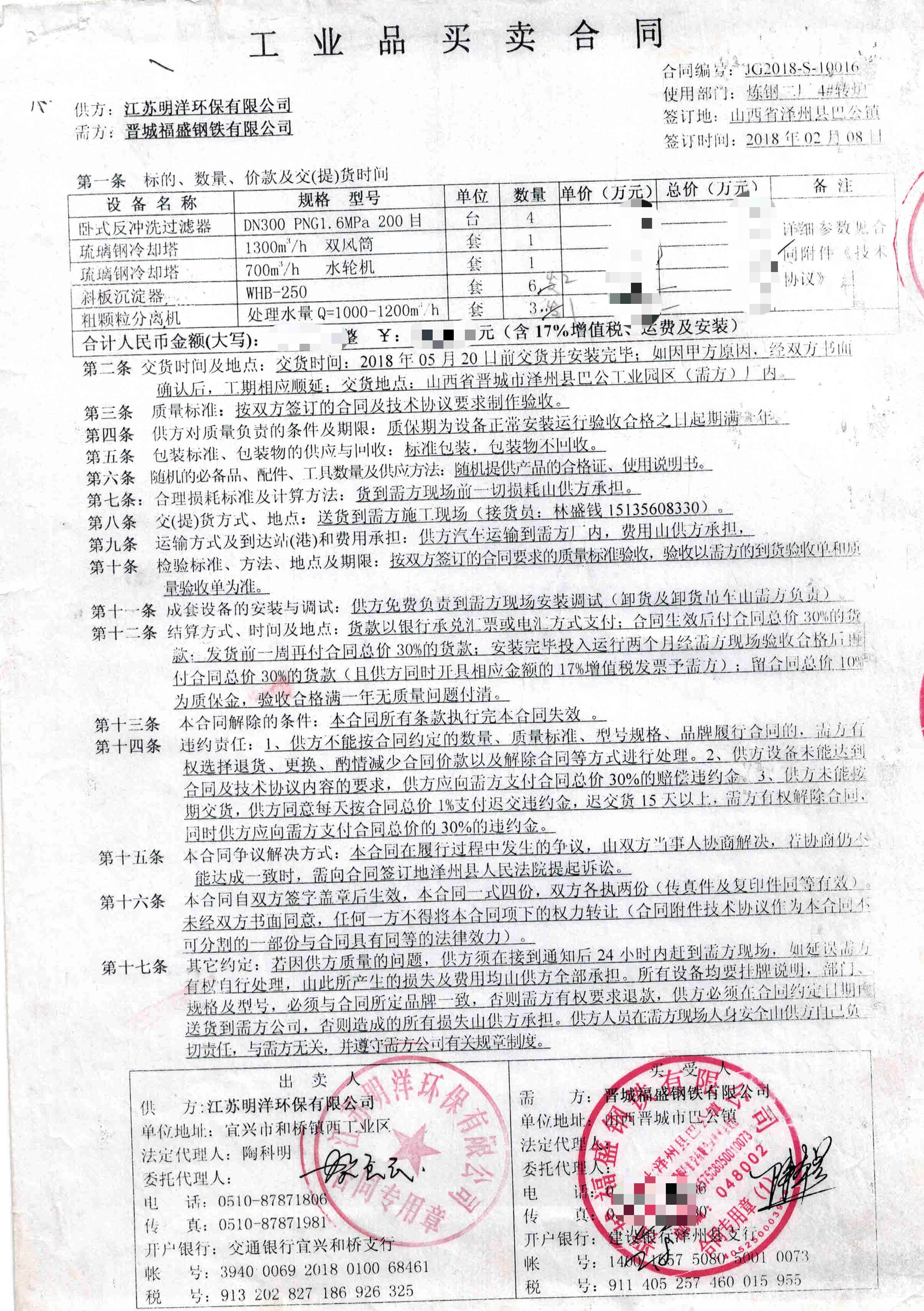 晉城福盛(冷卻塔、沉淀器、粗顆粒)
